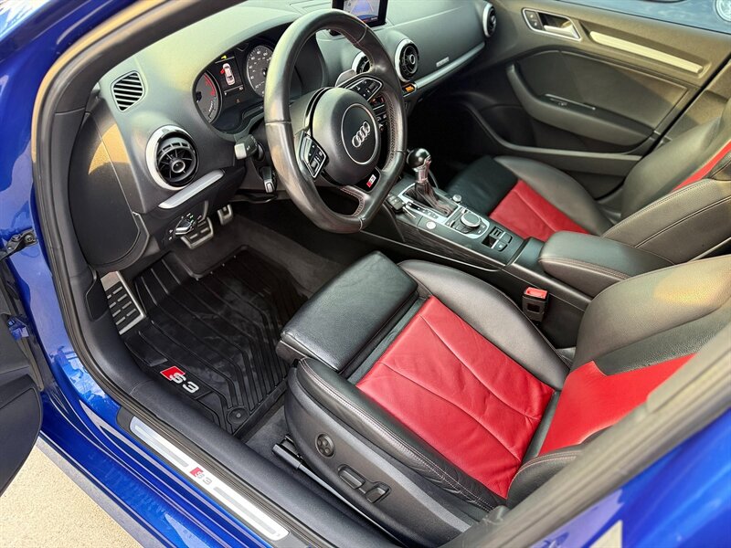 Introducing the 2016 Audi S3 2.0T quattro Premium Plus, a high-performance compact sedan that combines luxury and power. Equipped with a robust 2.0L Turbo I4 engine producing 292 horsepower and 280 ft-lbs of torque, this vehicle delivers an exhilarating driving experience. With under 80,000 miles and an average of less than 8,000 miles per year, it offers impressive efficiency at 23 MPG in the city and 31 MPG on the highway. This model features a sophisticated all-wheel-drive system, leather upholstery, a panoramic sunroof, navigation, and a premium sound system, ensuring a comfortable and engaging ride. The car is in excellent overall condition and comes with a clean CARFAX report.