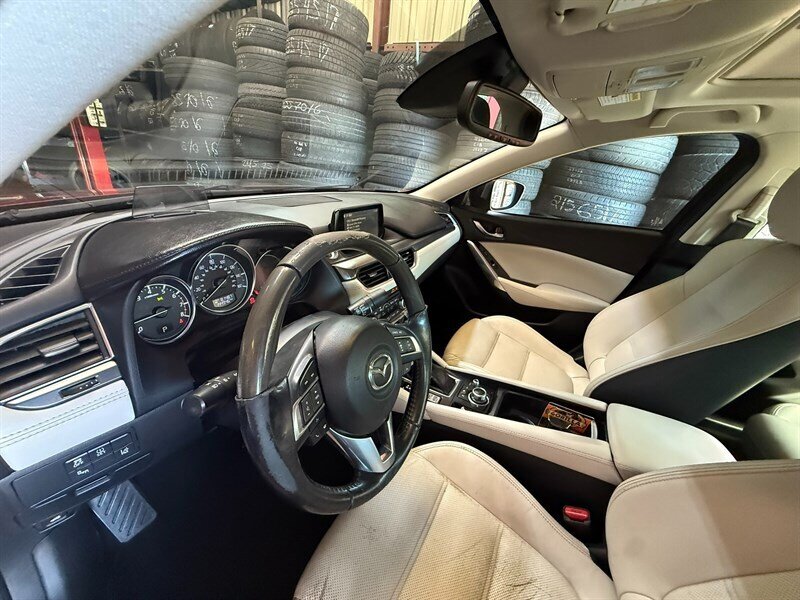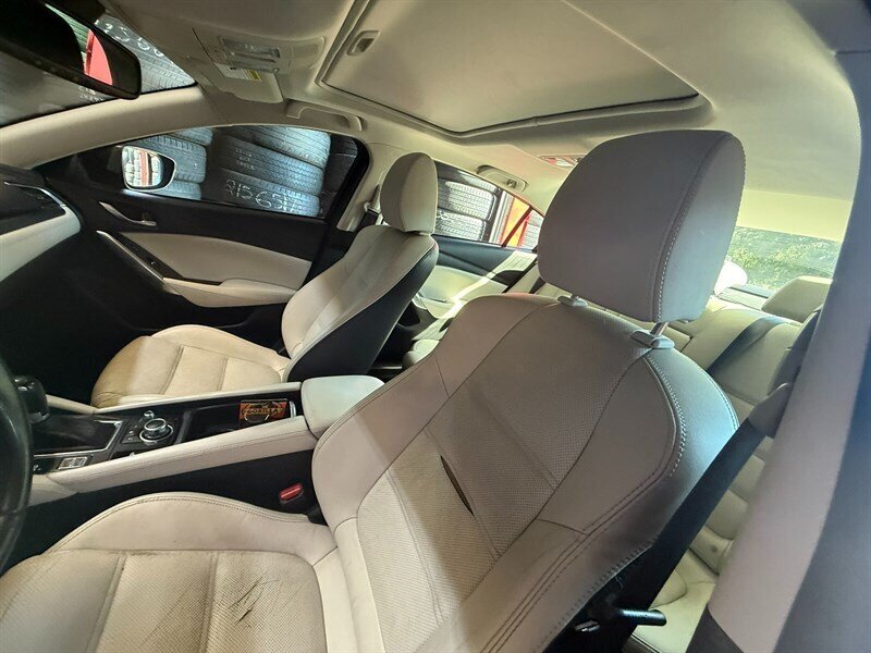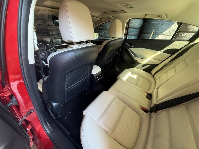 Introducing the 2016 Mazda Mazda6 i Grand Touring, a stunning sedan that combines style and performance! Powered by a SKYACTIV-G 2.5L I4 engine, this beauty delivers 184 horsepower and 185 ft-lbs of torque, ensuring a smooth and efficient ride. With a vibrant red exterior and a sleek white interior, it’s designed to turn heads. Enjoy premium features like leather seats, a sunroof, advanced navigation, and a Bose sound system for an exceptional driving experience. Plus, with an impressive fuel efficiency of 26 MPG in the city and 38 MPG on the highway, you can drive with confidence. This vehicle is in excellent overall condition, comes with a clean CARFAX report, and has only had one owner. Don’t miss out on this fantastic ride!