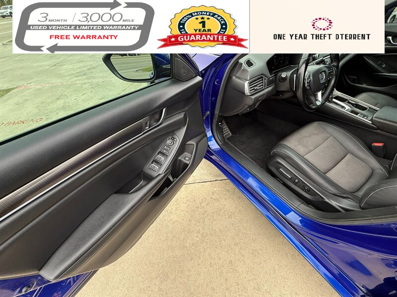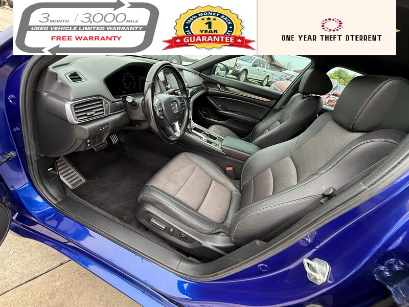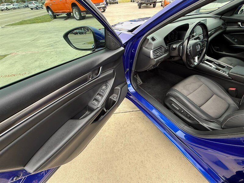 Introducing the 2020 Honda Accord Sport, a striking sedan that combines performance, style, and efficiency. Powered by a robust 1.5L Turbocharged I4 engine, this vehicle generates 192 horsepower and 192 ft-lbs of torque, ensuring a spirited driving experience. The striking blue exterior is complemented by a sleek black interior, creating a modern and sophisticated aesthetic.